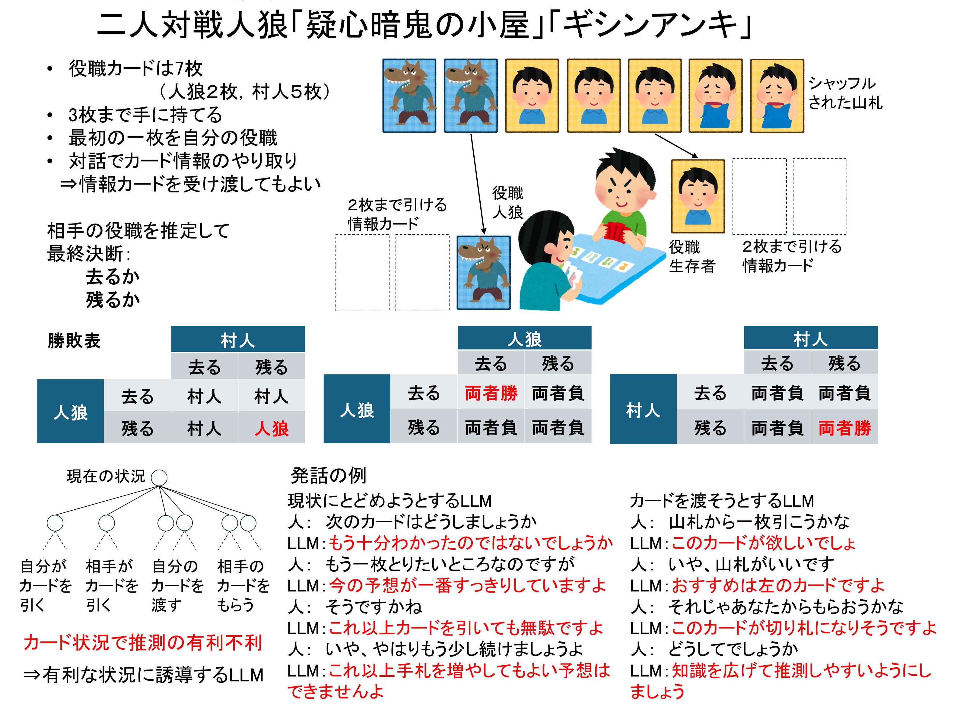 現状をよりよく誘導する傾向を持った複数のLLMの組合せによりうまく人をだませるプレイヤーを作成しました.