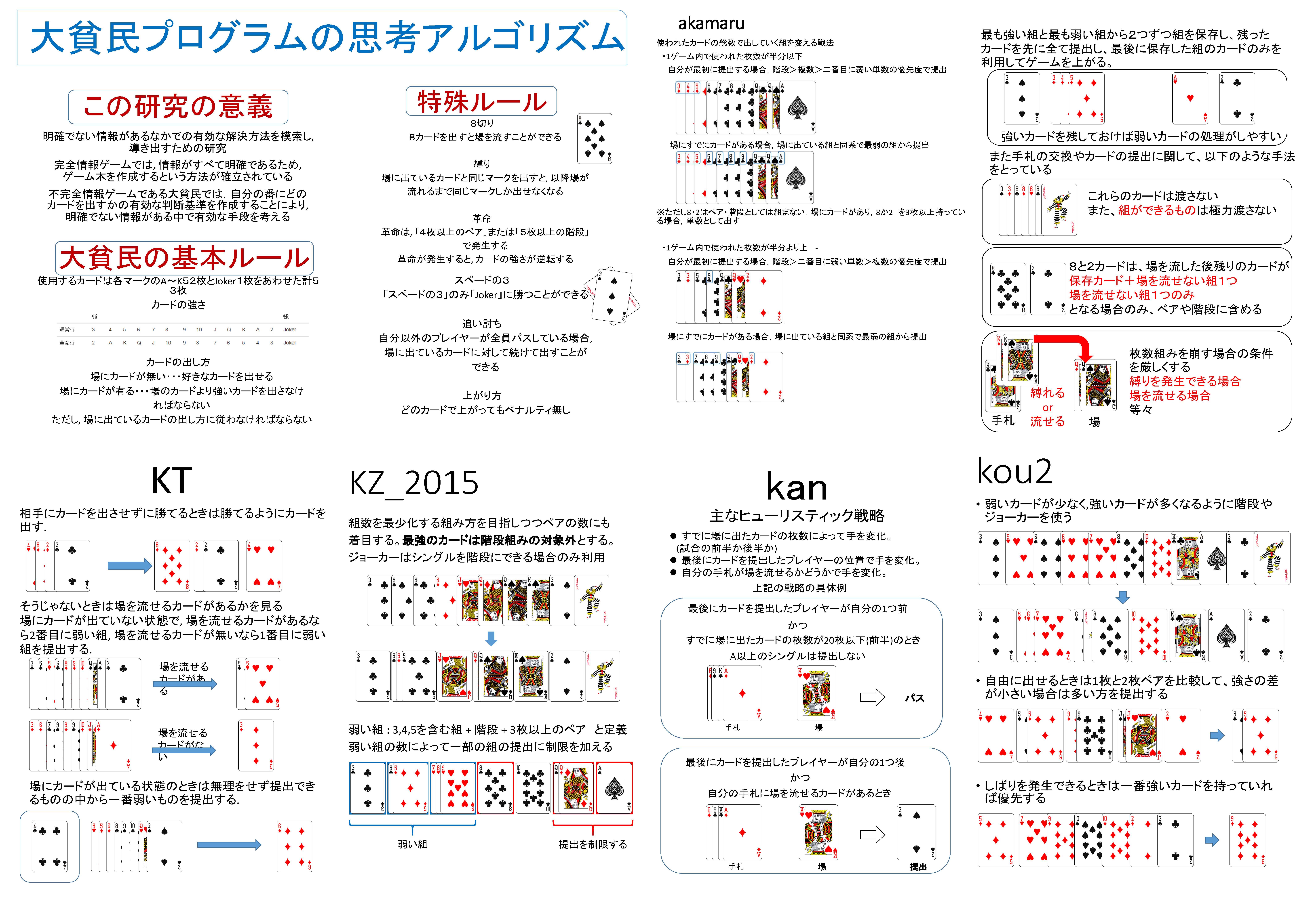 コンピュータでトランプゲームの大貧民を行う「コンピュータ大貧民」プレイヤーの作成です.